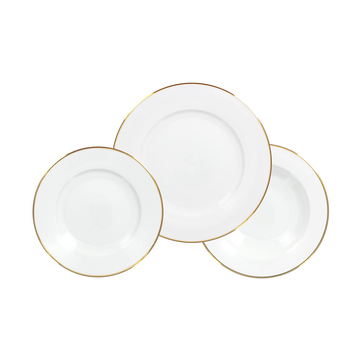 Service d'assiettes porcelaine 18 pièces blanc filet or