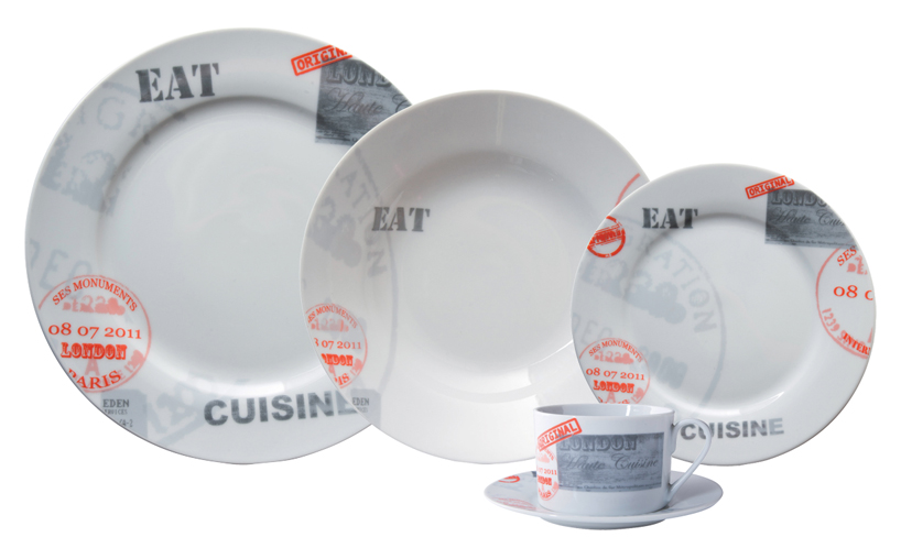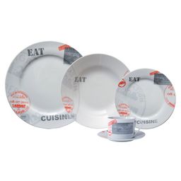 En savoir +Service composé de 6 assiettes plates, 6 assiettes creuses, 6 assiettes à dessert, 6 tasses et 6 sous-tasses.