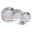 Service composé de 6 assiettes plates, 6 assiettes creuses, 6 assiettes à dessert, 6 tasses et 6 sous-tasses.