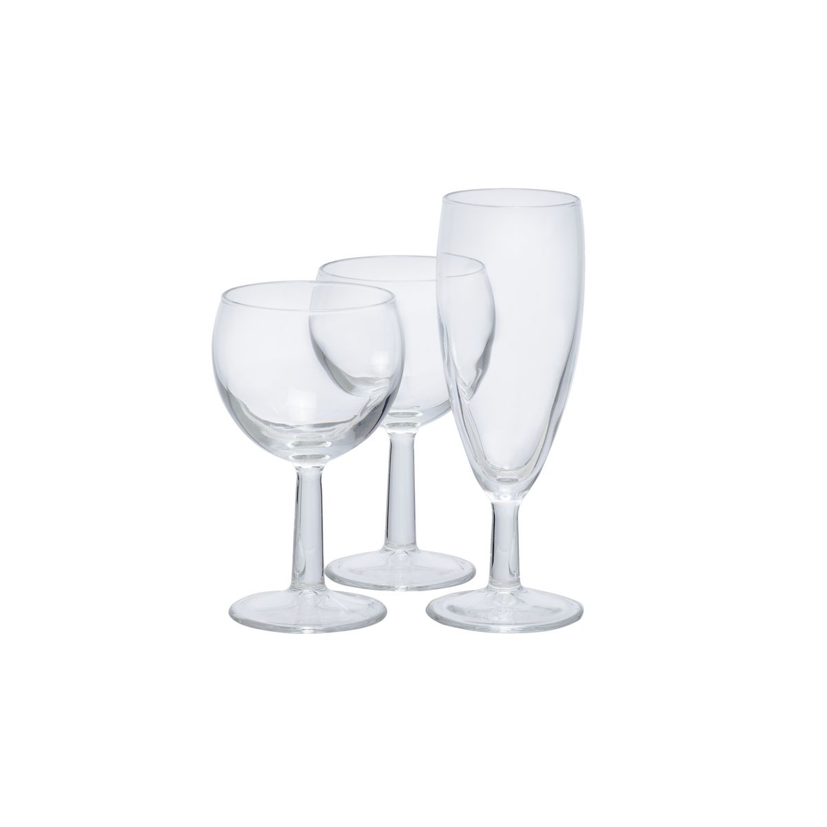 6 verres à eau, 6 verres à vin, 6 flûtes à champagne