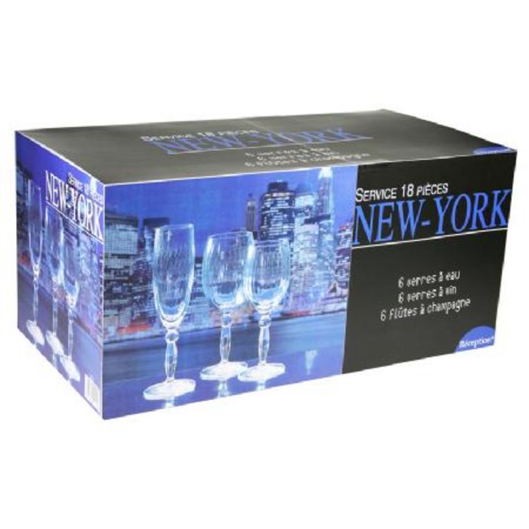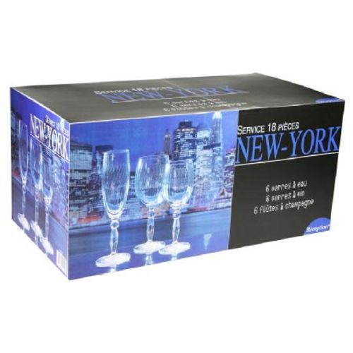 Service en verres de 18 pièces - Modèle New York composé de : - 6 verres à eau - 6 verres à vin - 6 verres à champagne