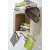 Un serviette de toilette en éponge pur coton épaisse, douce et moelleuse. On aime aussi le joli tissage chevron et les liteaux contrastants qui la rendent particulièrement déco, et on l'associe au drap de bain et aux gants de toilette coordonnés en mixant les couleurs.