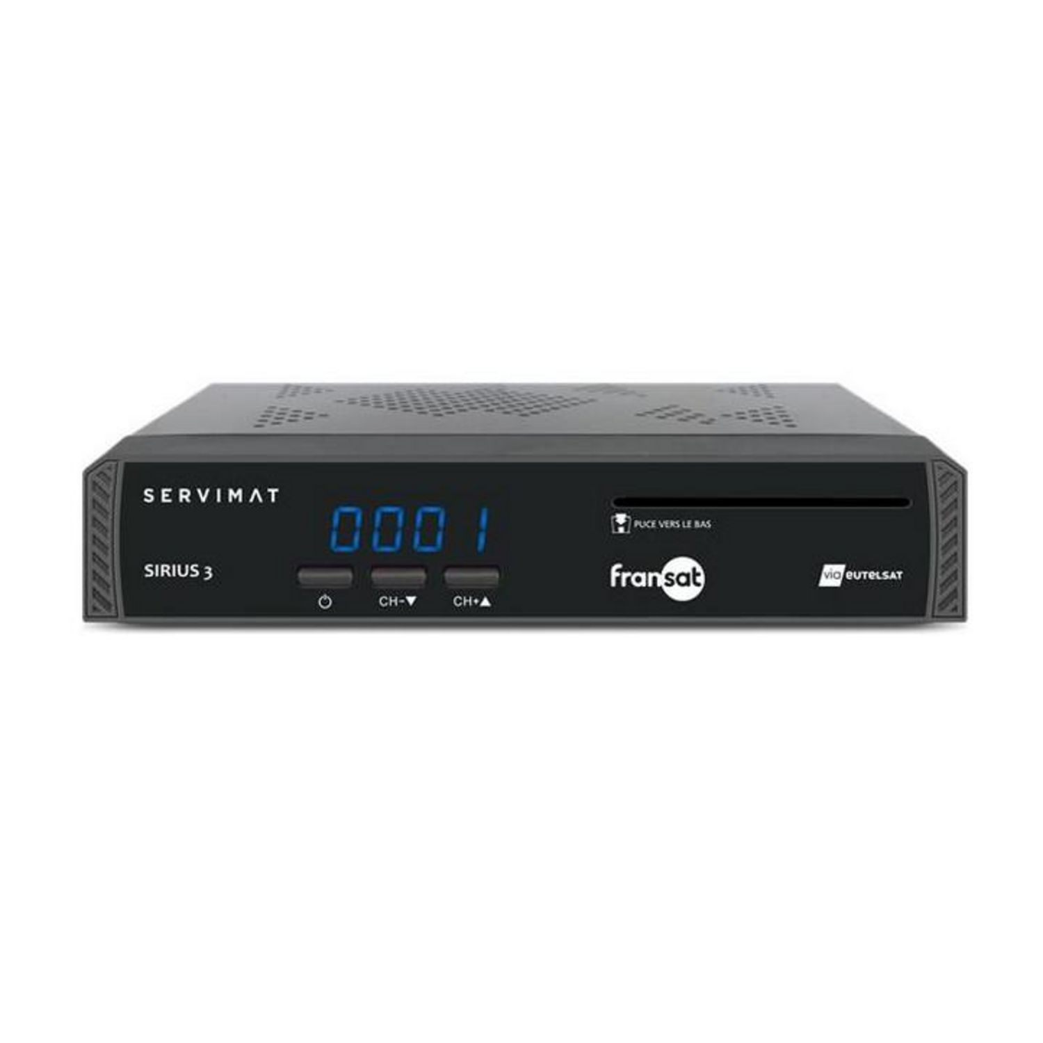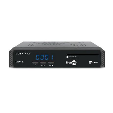 Servimat SIRIUS3 Avec ce décodeur Servimat SIRIUS3, appréciez pleinement les chaînes de la TNT en haute définition. Fonctionnel et convivial, il est idéal pour enregistrer, voir et revoir vos programmes préférés. Grâce à sa fonction multimédia, écoutez vos musiques et visionnez vos films et hotos av