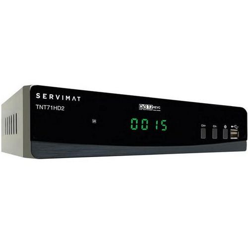 Servimat TNT71HD2 Décodeur TNT HD Servimat TNT71HD2 fonctionnel discret et fiable. Avec le TNT71HD2, appréciez pleinement les chaînes de la TNT en Haute Définition avec une qualité audio et vidéo exceptionnelle. Doté d?un port USB sur lequel vous pouvez raccorder une unité externe , il est idéal pour enregistrer, voir et revoir vos programmes préférés, et avec la Fonction Multimédia écoutez vos musiques, visionnez vos films et vos photos. Grâce à la Fonction Time Shift vous pourrez stopper la vision d?un programme, vaquer à vos occupations et la reprendre quand vous le souhaitez comme avec un DVD. Avec le déport de télécommande et d?affichage vous pourrez piloter l'adaptateur tout en le dissimulant derrière le téléviseur ou dans un meuble. Sa télécommande compatible vous permettra de piloter aussi le téléviseur.