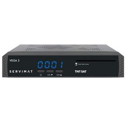 Servimat VEGA3 Avec le récepteur VEGA 3 de Servimat, appréciez pleinement les chaînes gratuites de la TNT en Haute Définition disponibles par satellite avec TNTSAT. Convivial et Fiable il est idéal pour Enregistrer et revoir vos programmes préférés. Le Déport des fonctions IR vous permettra de le di