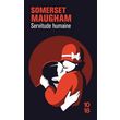 Le grand Bildungsroman de Somerset Maugham. Voici le Bildungsroman de Somerset Maugham par lequel il s'est imposé en 1915 et qui reste incontestablement l'un des grands romans anglais de ce siècle. C'est toute l'histoire d'un homme vite éloigné des joies et des certitudes de l'enfance, tôt confronté aux questionnements de l'existence comme à ses incohérences et qui à toute force veut donner un sens à sa vie. Contraint de renoncer à la peinture où il a cru un moment trouver son salut, il deviendra médecin malgré de grandes difficultés matérielles, et finira par rencontrer l'amour. Eludant tout lyrisme incongru dans ce roman où il a mis beaucoup de sa propre vie, Somerset Maugham a prouvé avec ce chef-d'oeuvre qu'il avait bien mérité des lettres anglaises.