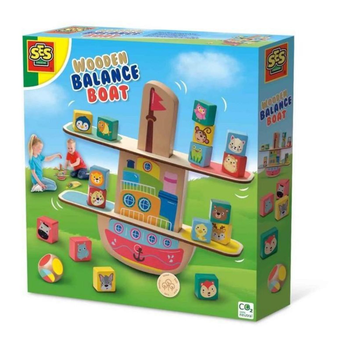 Le bateau d'équilibre en bois ! Un jeu super excitant pour les enfants et toute la famille. Le bateau d'équilibre peut etre joué n'importe où, avec deux joueurs ou plus. Le bateau d'équilibre en bois est livré avec 16 pions d'animaux en bois, un sac de rangement pratique et un dé en bois.