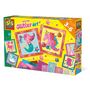 Contenu : 6 cartes autocollantes, 4 couleurs de papier transfert brillant, 84 autocollants en forme de diamant rose, 84 autocollants en forme de diamant bleu, 84 autocollants en forme de diamant argenté, 84 autocollants en forme de diamant rose clair, Autocollants à paillettes rose en mousse, 10 pompons en 3 couleurs Instructions Age minimum : 3 ans