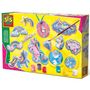 Réalisez de superbes créatures magiques en moulage à l'aide de ce kit créatif sur le thème des licornes !Contenu du kit :- Plâtre- Moule- 6 couleurs de peinture tendance- Pinceau- Outil de lissage- Tube de paillettes argentées- Ruban en satin bleu Age minimum : 6 ans
