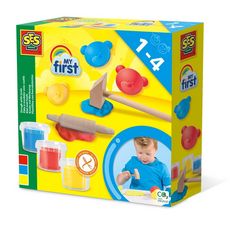 My first : Pâte à modeler avec outils de la marque Ses Creative. My First est une ligne de produits spécialement conçus pour les plus petits créatifs. Les produits de cette ligne sont très ergonomiques, extrêmement sûr, hypoallergénique et sans gluten. Avec la pâte à modeler de SES, tu ne t'ennuies