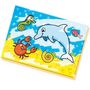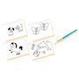 La magie opèrera avec de l'eau ! Les enfants vont pouvoir peindre sans avoir besoin de sortir les pots de peinture... Plus de désordre sur la table de la cuisine ! Il suffira à l'enfant de passer son pinceau sous l'eau et de l'appliquer sur les cartes illustrées et là comme par magie des couleurs appraitront sur le chien et le chat, le cheval, les animaux marins et même sur les papillons !