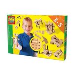 SES - Kit pour le jeune ébéniste - Jeu de construction en bois permettant de créer de nombreux jouets grâce aux 46 pieces de diverses tailles et formes. Fixation par un systeme de chevilles en plastique. Peut se démonter afin de recréer. Maillet en bois inclus. - Mixte - a partir de 3 ans - Livré a l'unité