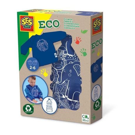Le Tablier Eco 100% recyclé de SES Creative est conçu pour les activités créatives des enfants dès 1 an. Fabriqué à partir de bouteilles PET recyclées, ce tablier bleu foncé aux motifs animaliers allie durabilité et design ludique. Son système de fixation velcro facilite l'habillage et le retrait, idéal pour l'autonomie des tout-petits.