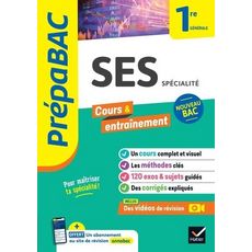 Un outil de travail complet et efficace, conforme au programme de SES en 1re générale (enseignement de spécialité). Dans chaque chapitre : le cours, les méthodes clés, des exercices et sujets corrigés. Pour vous accompagner tout au long de votre Première et vous aider à avoir un bon dossier ParcourSup. Sur chaque thème du programme de SES 1re générale - Un cours synthétique et visuel - Une grande carte mentale récapitulative - Des fiches de méthode - Des exercices progressifs - Des sujets guidés Objectif Bac - Tous les corrigés détaillés Inclus : des vidéos immédiatement accessibles via un QR code Des animations vidéo pour comprendre et mémoriser des notions clés du programme Gratuit, avec l'achat du livre : un abonnement au site de révision (Lien -> http : //www. annabac. com/) - Dans chaque matière, sur chaque thème du programme de 1re, un parcours de révision interactif : avec des fiches, des quiz et des sujets corrigés - Des conseils pour bien s'orienter