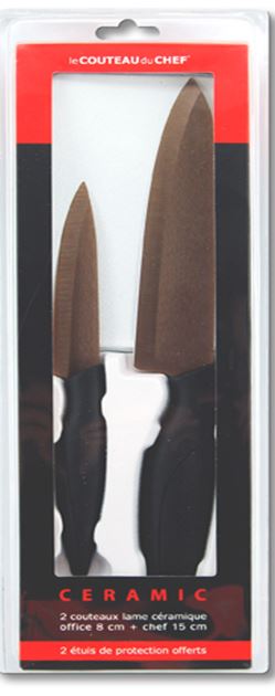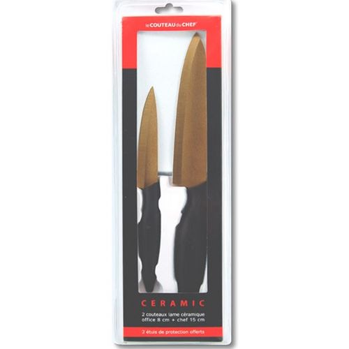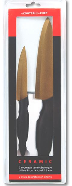 Set de 2 couteaux, lames céramiques finition titane. Le couteau du chef !