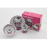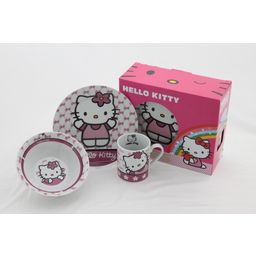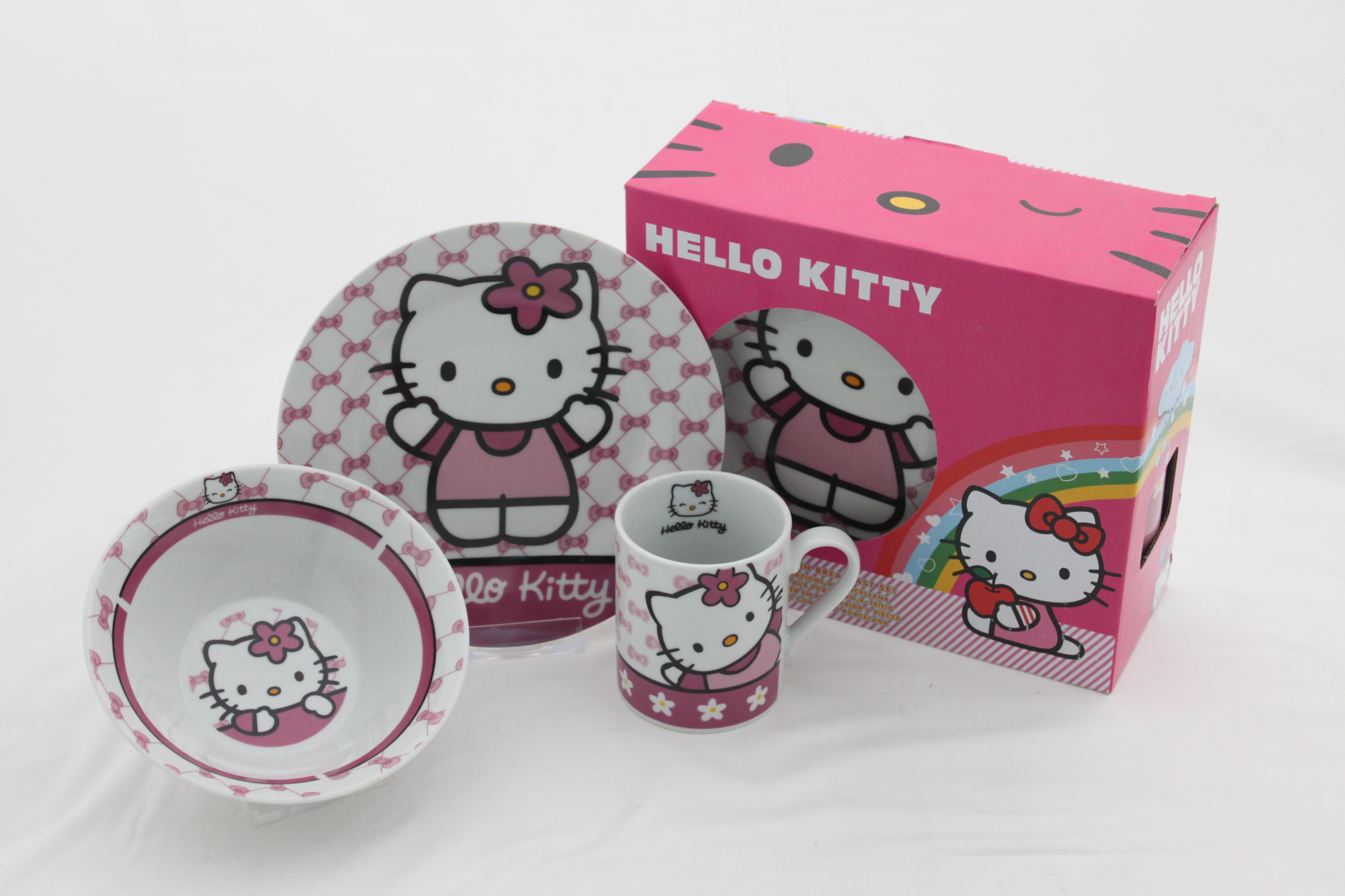 Set 3 pièces HELLO KITTY en porcelaine composé d'une assiette plate, d'un bol et d'un mug.