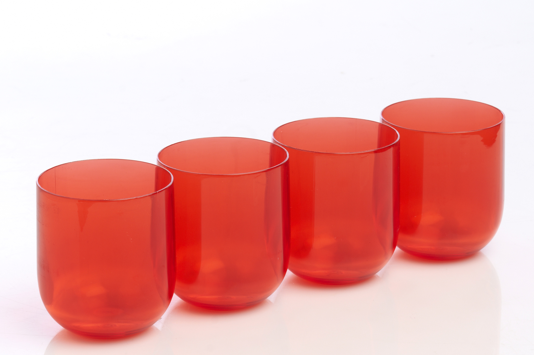Donnez une touche de couleur à votre vaisselle avec ce lot de 4 verres transparents en plastique très résistant ! Existe en violet, rouge et bleu.