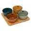 Set apéritif 4 coupelles en grès et plateau en bambou 22 cm Multicolore BE VINTAGE