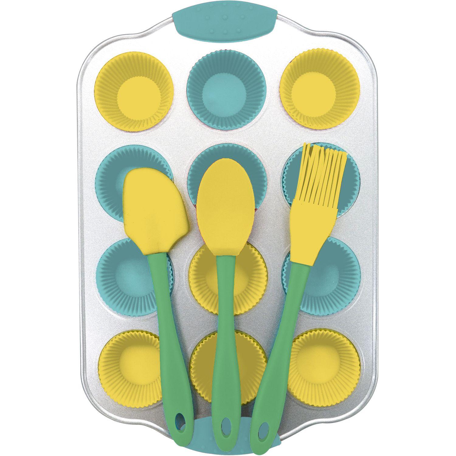 Set cupcake moule .30 x 19 x 2.4 cm spatule 18 x 4 cm cuillère 18 x 3.8cm pinceau 21x 3.5cm moules à muffins diamètre 5 x 2.5 cm