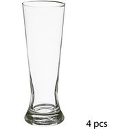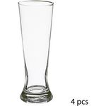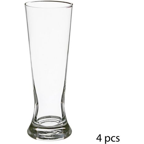 Informations Techniques : Dimensions : D. 7 x H. 20,5 cm Matière : Verre Spécificités : Pratique & Utile Lot de 4 Verres à Bière Forme Ronde Passage au Lave-Vaisselle & au Micro-Ondes Contenance : 37 cl Contact Alimentaire Poids : 0,36 kg Couleur : Transparent