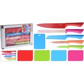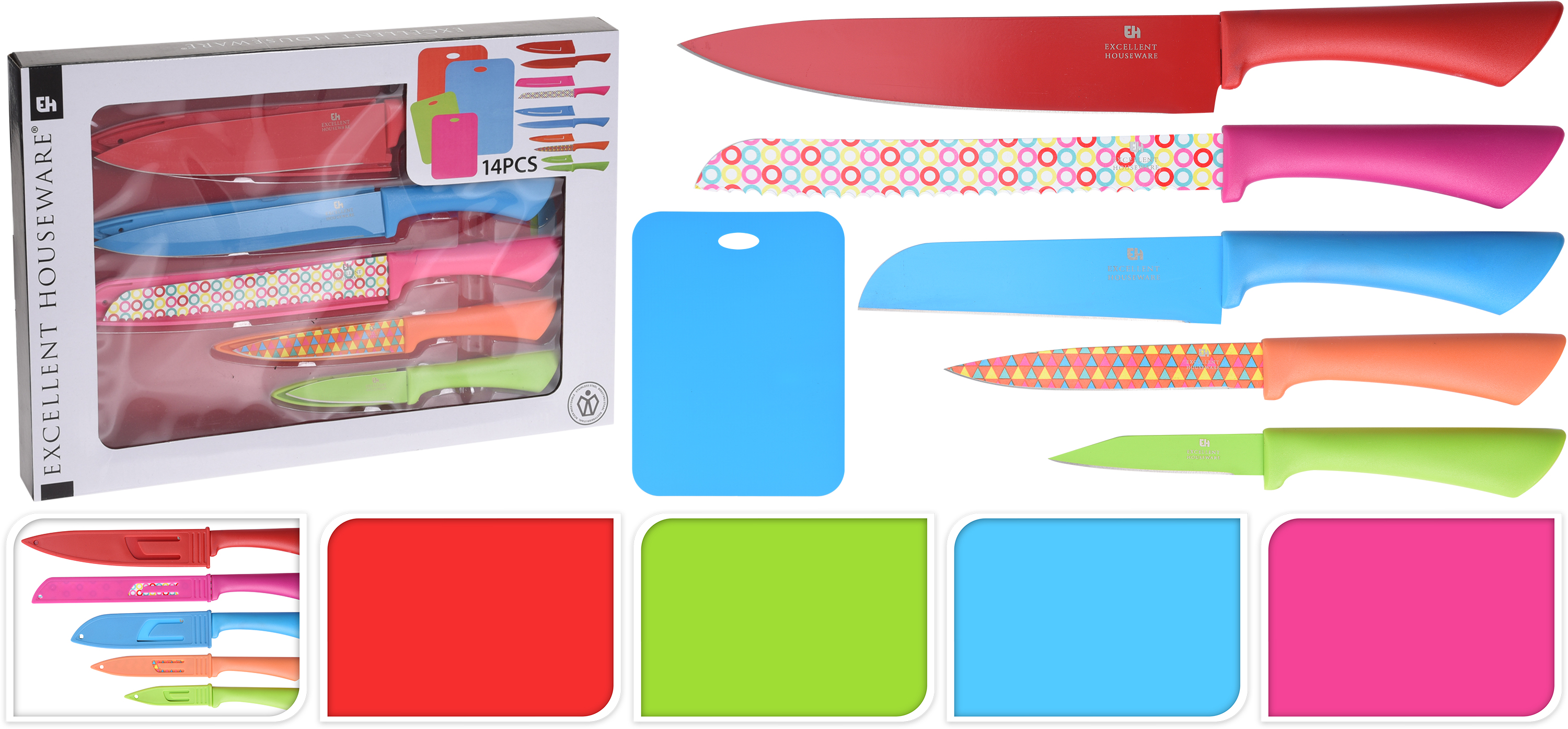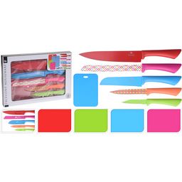 Découvrez ce coffret de découpe 14 pièces multicolore, composé de 4 couteaux avec protection + 4 planches. Une superbe idée cadeau afin d'épater vos amis et votre famille durant les fêtes ! Grâce à ce coffret, vous pouvez découper en toute simplicité les différents types d'aliments que vous souhaite