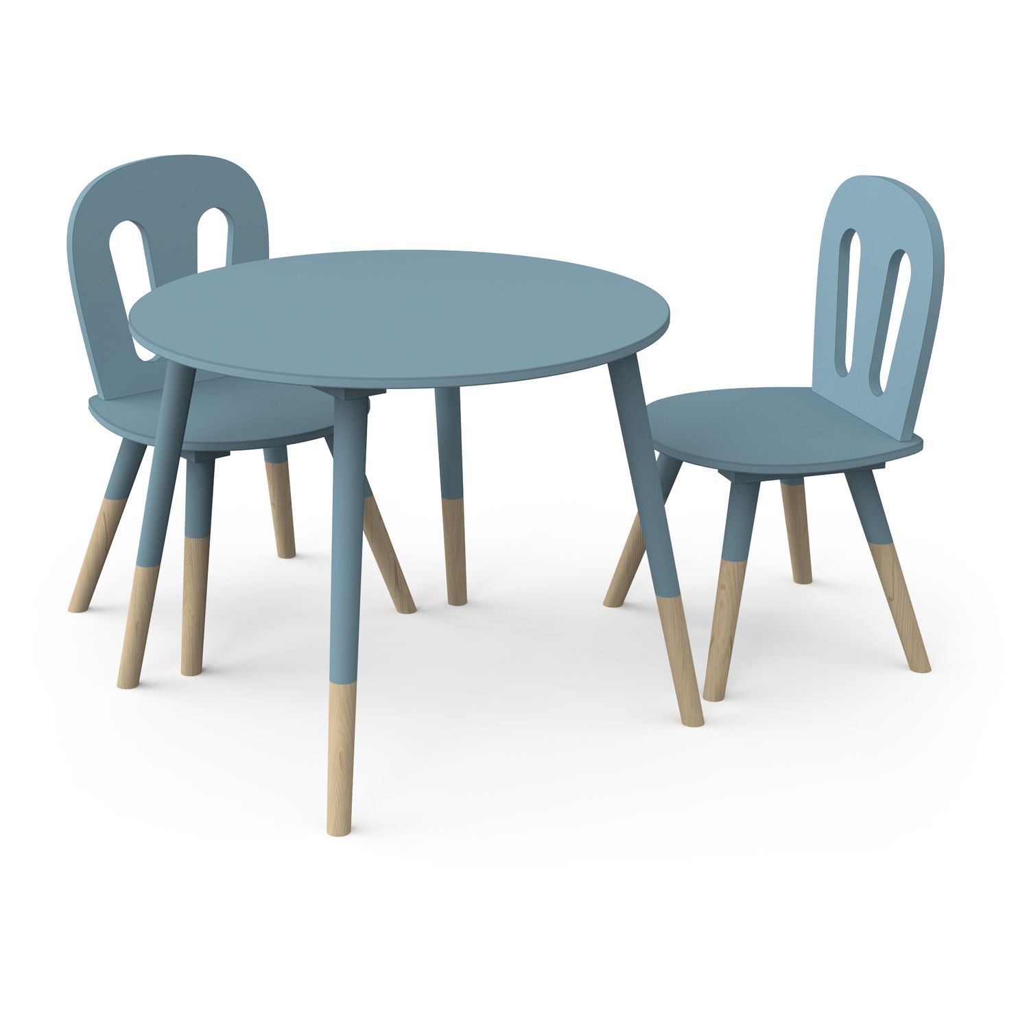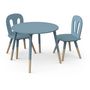 Ce set LINIA composé d'une table et de deux chaises est l'ajout parfait à la chambre de tout enfant offrant un espace idéal pour jouer, dessiner, ou manger. La table, d'un diamètre de 60 cm, est fabriquée en panneau de particule de 15 mm d'épaisseur et en MDF laqué, garantissant à la fois solidité et facilité d'entretien. Les pieds en hévéa robustes assurent une stabilité impeccable, tandis que la finition bleue avec des touches de pin naturel apporte une bouffée d'air frais et une allure scandinave à l'ensemble. Ce set est non seulement pratique mais aussi conçu pour stimuler la créativité et l'autonomie des enfants, dans un environnement sûr et attrayant.
