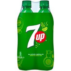 Boisson gazeuse aux extraits de citron et de citron vert, avec sucre et édulcorant. 7UP aux Extraits de citron & citron vert 4 x 50 cl
