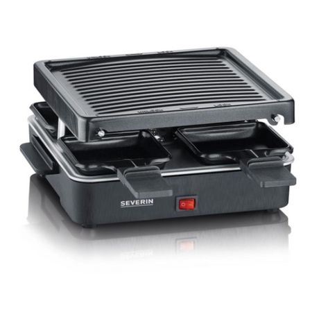 Le mini-gril raclette RG 2370 de Severin vous permettra de faire fondre le fromage et cuire les légumes et viandes tout en convivialité. Elle se compose d'un appareil à raclette classique surmonté d'une pierre pour pierrade. Il peut être utilisé par 4 personnes simultanément. Le produit est accompagné de 4 poêlons en revêtement antiadhésifs. Grâce à sa surface de cuisson en pierre à cuire de 21 x 21 cm, vous pourrez faire griller facilement vos accompagnements.