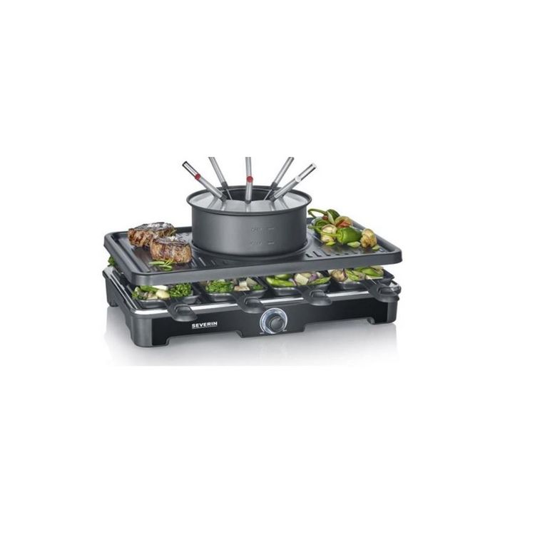 Severin 2347 Appareil à raclette 2347 de Severin.Appareil 2 en 1 pour 8 personnes : la combinaison idéale de la raclette et de la fondue.Raclette avec plaque de cuisson au revêtement céramique, caquelon à fondue lavable facilement au lave-vaisselle.Avec 8 poêlons avec revêtement anti-adhésif et 8 fo