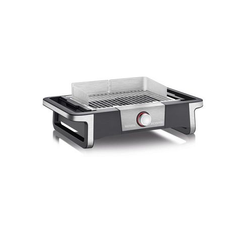 Severin PG8113 Barbecue électrique posable Boost Severin PG8113 dotée d'une grille inox de haute qualité et cuve avec réflecteur de chaleur, pour une cuisson encore plus rapide. BoostZone : zone double avec résistance hautement efficace pour une puissance maximale de 500° C. Thermostat réglable de 0