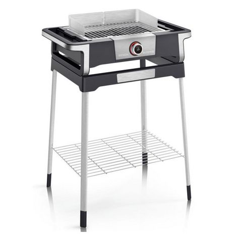 Severin PG8118 Barbecue électrique sur pieds Digital Boost S PG8118 de Severin pour une utilisation à l'intérieur comme à l'extérieur. Dotée d'une cuve avec réflecteur de chaleur pour une cuisson encore plus rapide.BoostZone : zone double résistance hautement efficace pour une puissance maximale jusqu'à 500°C.Bouton rotatif avec rétro-éclairage LED réglable de 0 à 500°C : veille = bleu, jusqu'à 320°C = orange, jusqu'à 500°C = rouge.Vos viandes cuites à la perfection grâce à sa sonde thermique raccordable avec plage de mesure allant de 10 à 300°C par pallier de 1°C.Moins de fumée et moins d'odeurs grâce au bac à eau : parfait pour une utilisation à l'extérieur comme à l'intérieur.Grille et résistance amovibles pour un nettoyage facile.Coupe-circuit de sécurité qui arête la résistance dès qu'elle est enlevée de l'appareil.