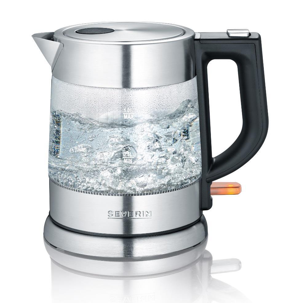 Severin WK3468 Bouilloire sans fil Severin WK3468 électrique en acier inoxydable compacte et puissante en verre de haute qualité. Facile à nettoyer grâce au couvercle à charnière avec grande ouverture. Filtre à écailles amovible et lavable. Opération pratique et agréable à une main. Protège-doigts i