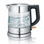 Severin WK3468 Bouilloire sans fil Severin WK3468 électrique en acier inoxydable compacte et puissante en verre de haute qualité. Facile à nettoyer grâce au couvercle à charnière avec grande ouverture. Filtre à écailles amovible et lavable. Opération pratique et agréable à une main. Protège-doigts intégré sur le couvercle pour un fonctionnement sûr. Système sans fil central à 360 °: peut être fixé sans fil à la base de l'appareil depuis n'importe quelle direction. Elément chauffant caché par une plaque en acier inoxydable. Un design de haute qualité et peu encombrant!