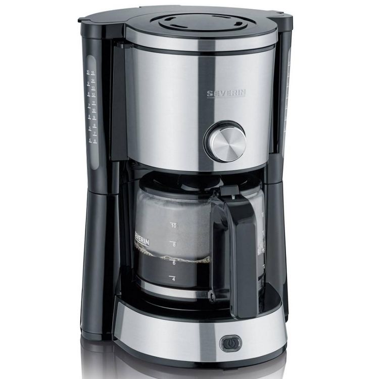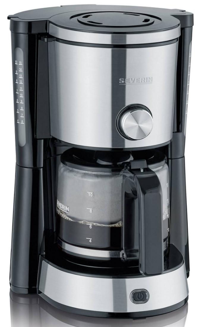 Severin KA4825 Cafetière filtre TYPESWITCH Severin KA4825. Capacité/contenu jusqu'à 10 tasses (1.25 L).« AromaSwitch » pour choisir entre un café fort ou doux.Design de qualité supérieure avec applications inox.Préparation rapide et silencieuse du café grâce à une résistance atteignant 1 000 Watts.Filtre pivotant avec porte-filtre amovible 1 x 4.Système anti-goutte pour retirer sans risque la verseuse, même pendant la préparation du café.Indication du niveau d?eau bien visible sur les deux côtés.Commande facile.Touche marche-arrêt avec voyant lumineux.Arrêt automatique après 40 minutes.Compartiment intégré pour ranger le câble.Verseuse en verre graduée avec poignée ergonomique.Plaque chauffante.