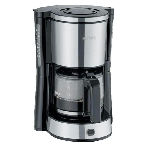 La cafetière à filtre Severin KA 4823 est conçue pour les amateurs de café souhaitant préparer jusqu'à 10 tasses rapidement. Avec une puissance de 1000 W et une capacité de 1,25 L, elle offre un café chaud grâce à son système anti-goutte et sa fonction garder chaud. Son design élégant en noir et aci