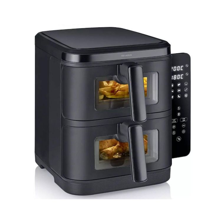 Severin FR2468 Friteuse à air chaud fr2468 de Severin.Cuisson variée, saine, rapide et économe en énergie sans ajout de matière grasse grâce à la technique innovante de cuisson par air chaud 360°.Deux cavités de 5,5 litres chacune, idéales pour les familles nombreuses ou pour préparer différents pla
