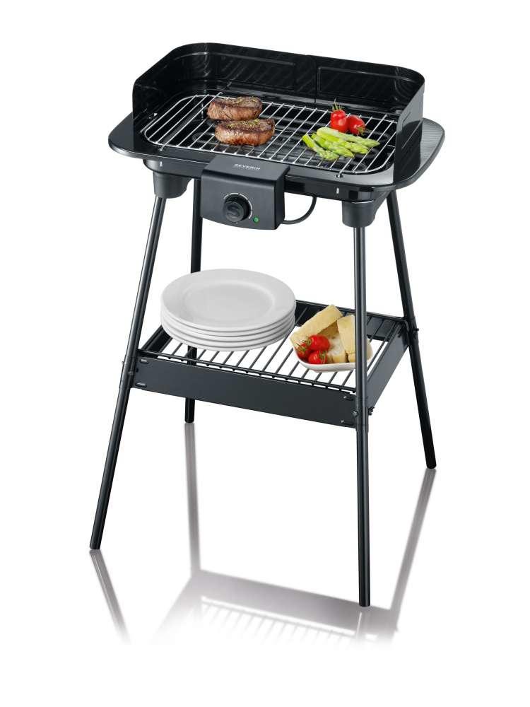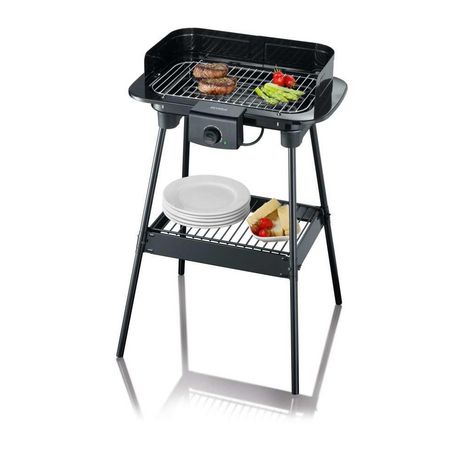 Severin PG8544 Barbecue électrique sur pieds Severin PG8544 à utiliser tout au long de l'année aussi bien en intérieur qu'en extérieur (possibilité de démonter le pied pour une utilisation autour d'une table). Grille de cuisson chromée 37 x 23 cm. Grille, résistance et pare-vent amovibles. Coupe-cir