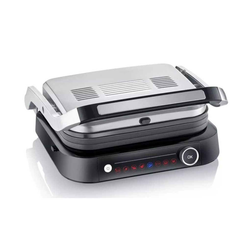 Severin KG2395 Le barbecue Sevini Pro KG2395 de Severin offre des possibilités de cuisson polyvalentes avec 7 programmes automatiques différents et un programme de cuisson manuel, de sorte que tous les goûts peuvent être satisfaits. Le programme “Perfect Steak” comprend un capteur qui détecte l'épai