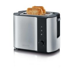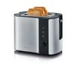 Severin 2589 Grille-pains 2 fentes Severin 2589. Elégant, ce grille pain possède un corps en inox avec parois froides pour que vous puissiez profiter de votre petit déjeuner en toute sécurité. Thermostat 6 positions pour adapter le niveau de grillage selon vos goûts. Centrage des tranches pour un do