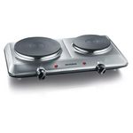 Severin DK1014 Le réchaud électrique DK1014 de Severin possède deux plaques chauffantes de 15 et 18 cm de diamètre.Chaque plaque à son propre thermostat pour être régler séparément.Le réchaud électrique DK1014 de Severin est simple à utiliser, un voyant lumineux vous indiquera l'état de marche des p