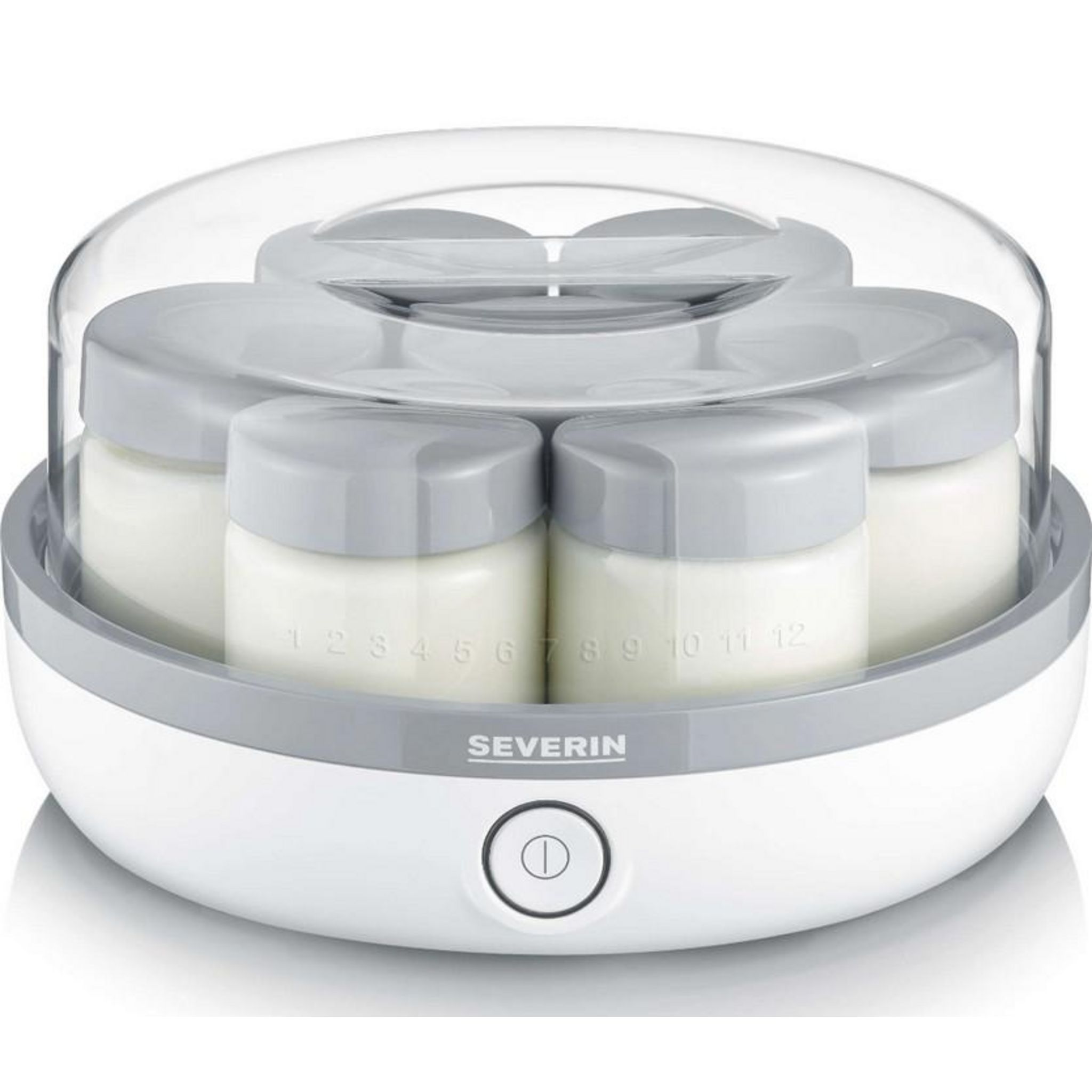 Severin JG3518 Yaourtière Séverin SJG3518 pratique et compacte. Réalisez facilement de délicieuses préparations maison grâce à cette yaourtière compacte ! Graduation Mémo : comme aide-mémoire, l'horaire de début ou de fin de préparation peut-être marqué sur la graduation Mémo en tournant simplement
