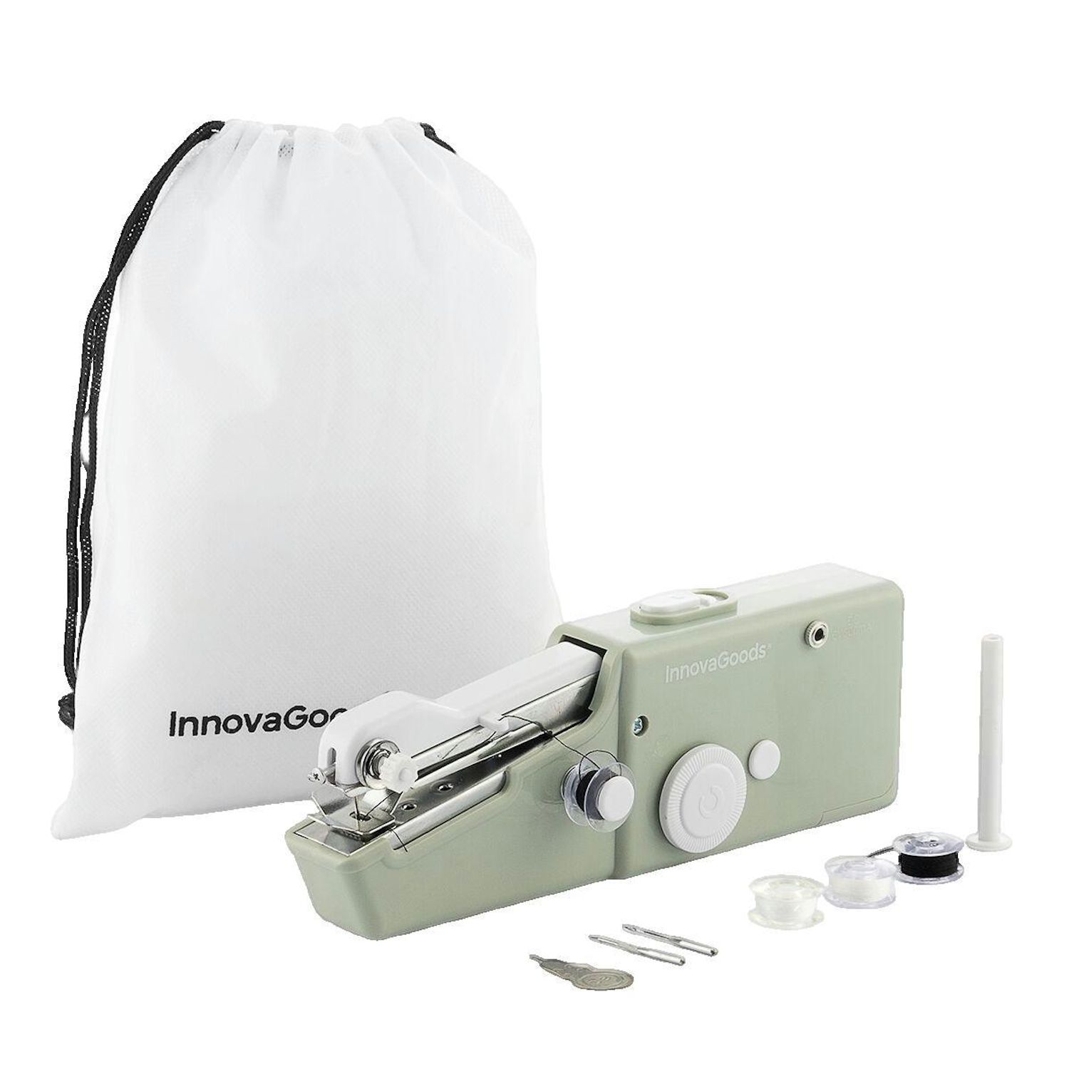 Découvrez la machine à coudre portative de voyage Sewket InnovaGoods, un appareil compact et léger en ABS, idéal pour les coutures à domicile ou en voyage. Facile à utiliser, cette machine peut coudre des tissus jusqu'à 1,8 mm d'épaisseur. Elle inclut des accessoires pratiques tels qu'une broche, un enfile-aiguille, trois aiguilles, quatre bobines de fil et un sac de transport. Son design en vert et blanc assure une prise en main confortable. Simplifiez vos projets de couture rapidement et en toute sécurité avec cet outil innovant et performant.