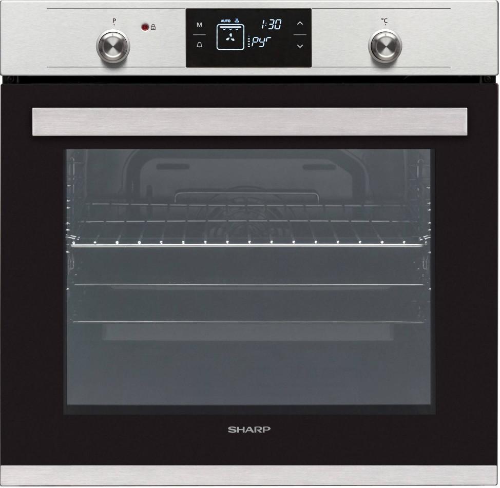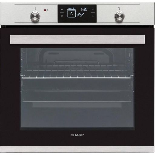 Sharp K71V28IM2 Four encastrable multifonction Sharp K71V28IM2.Nettoyage Pyrolyse: le four fonctionne à très haute température (480°C) pendant 1,5h pour réduire en cendres les salissures.ActiveCool: Equipée d'un quadruple vitrage et d'un système de ventilation, la porte du four est isolée de façon e