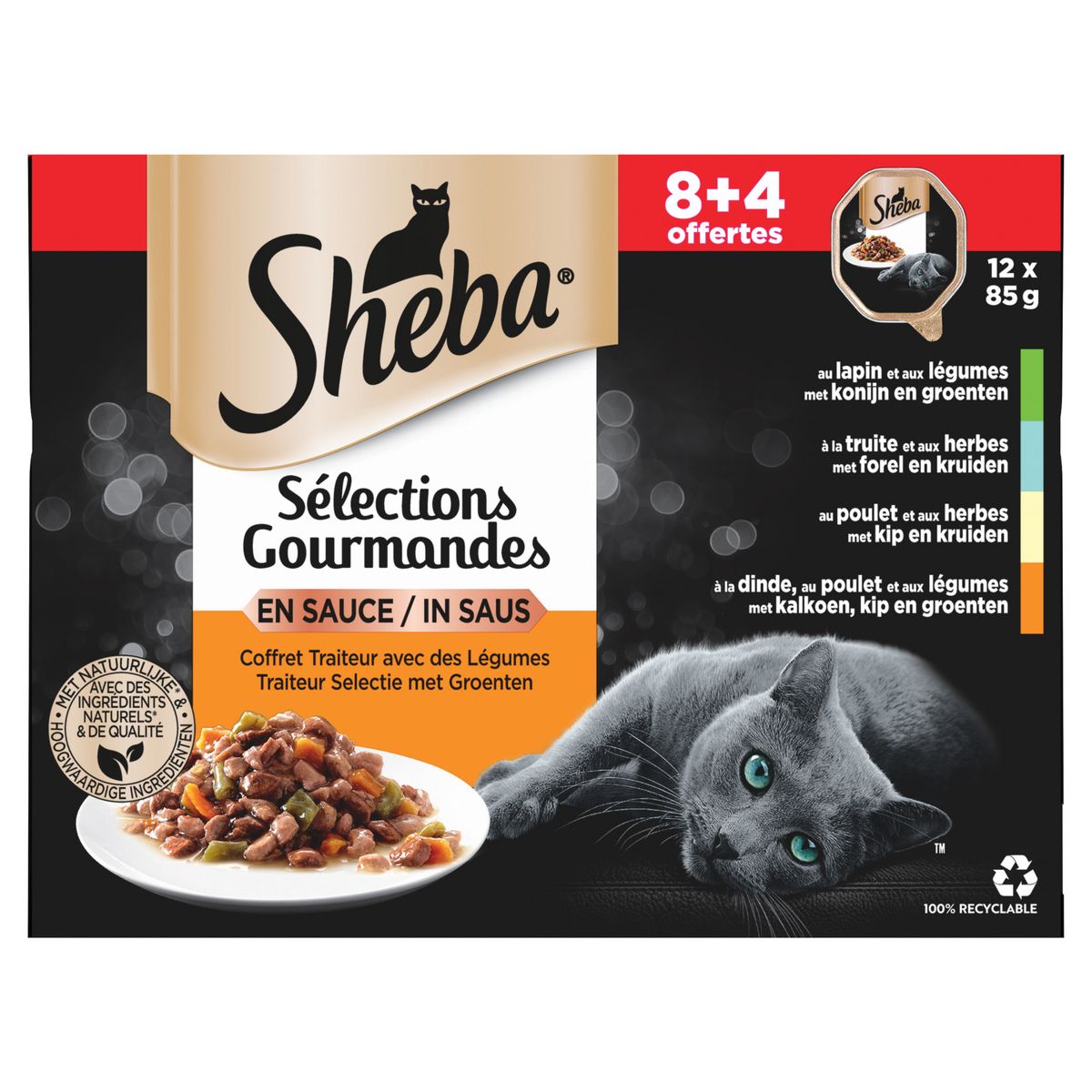 SHEBA Barquettes Sauce Gourmande 4 variétés pour Chat 85g 8+4 offertes