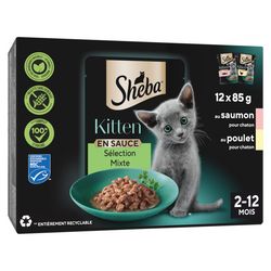 SHEBA Kitten sachets fraîcheur Sélection mixte en sauce 2 variétés pour chaton 12x85g