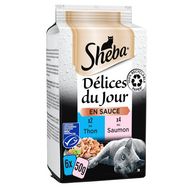 SHEBA Délices du Jour Sachets fraîcheur en Sauce au Saumon et au Thon MSC pour chat adulte 6x50g