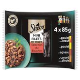 SHEBA Mini Filets Sachets fraîcheur en sauce 4 variétés pour chat 4x85g