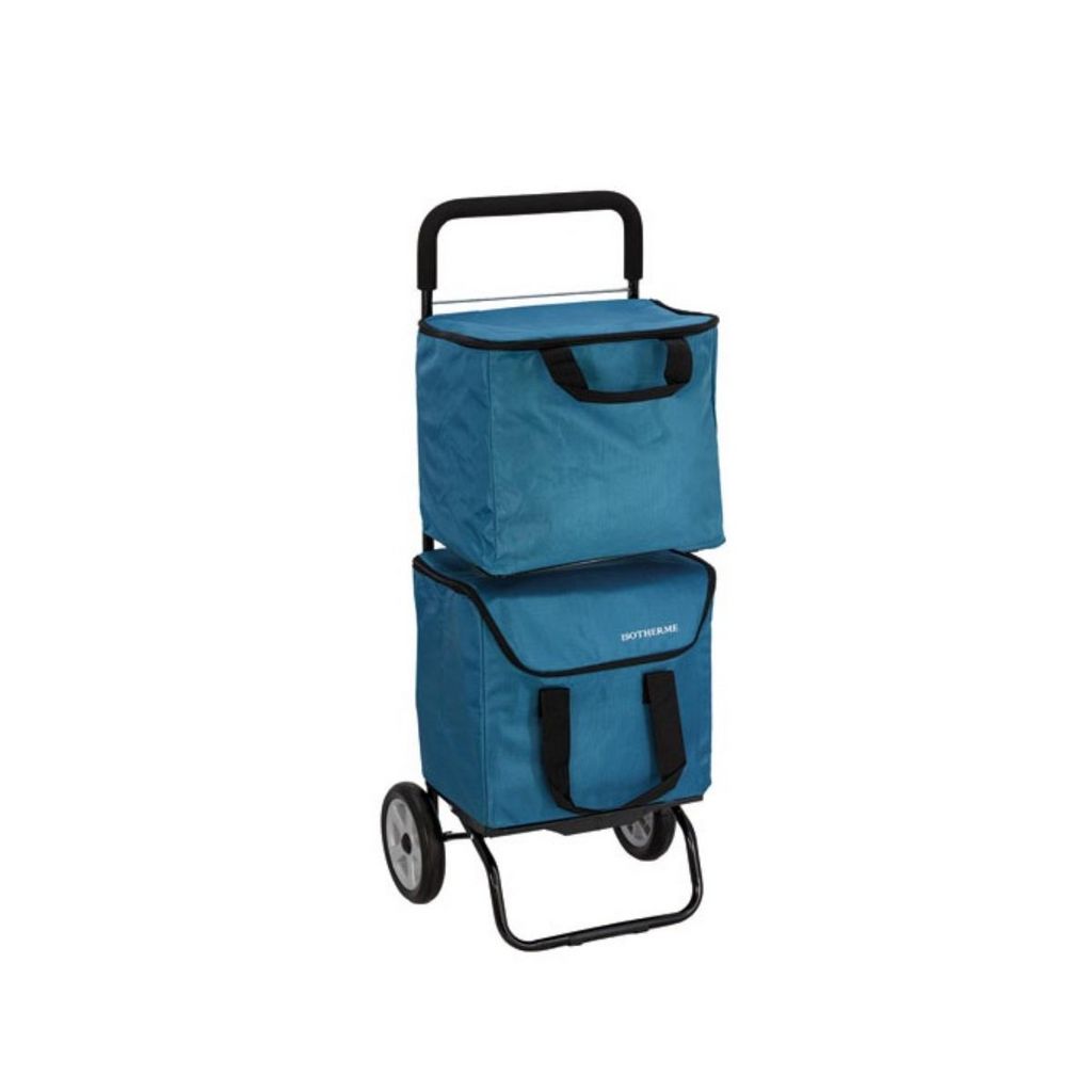 de plus, l'un des deux sacs est isotherme, permettant de maintenir la température des produits frais et surgelés.