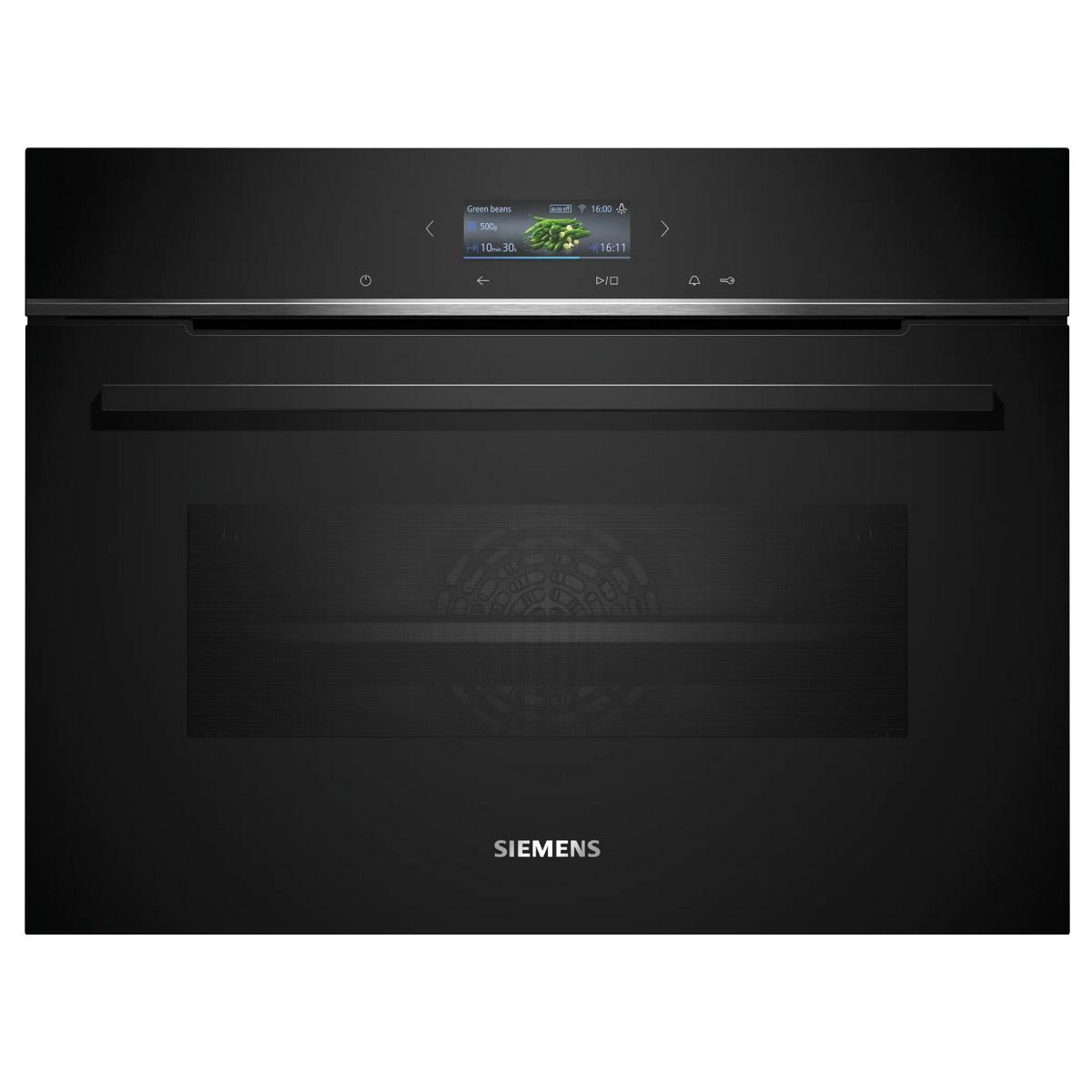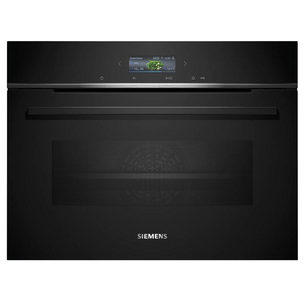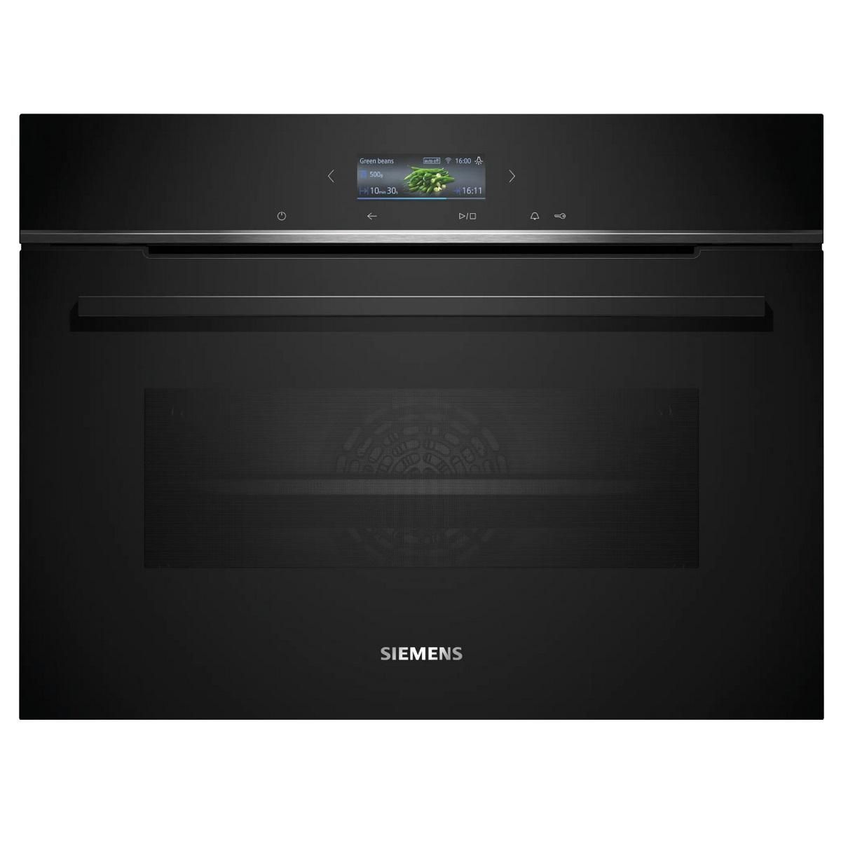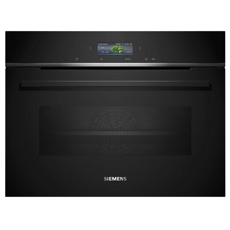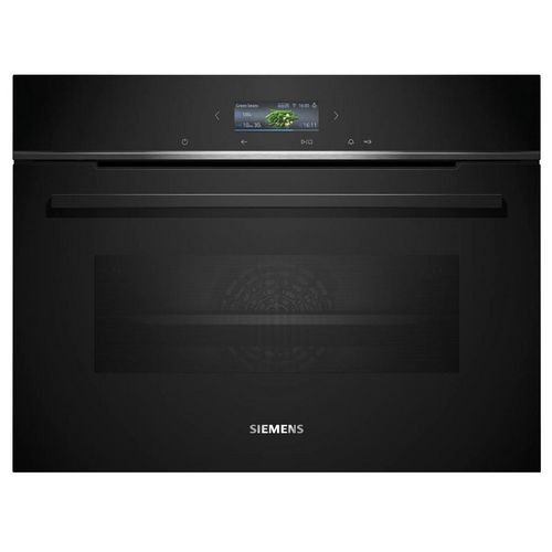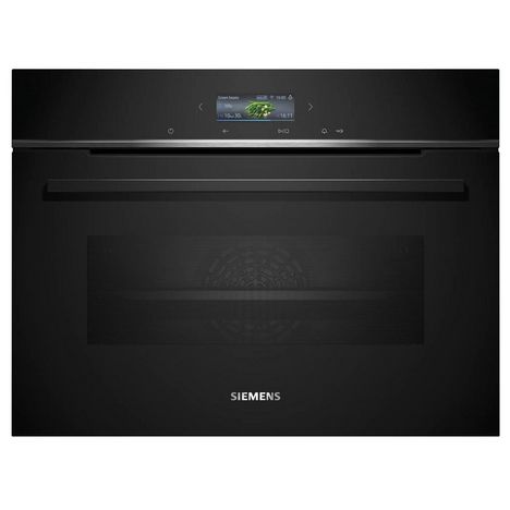 Siemens CB774G1B1 Le four intelligent iQ700 Siemens CB774G1B1, doté d'un Assistant à commande vocale pour un réglage intuitif des programmes et de l'activeClean pour un nettoyage sans effort. Ecran TFT couleur tactile – Navigation tactile pour une utilisation intuitive. Assistant à commande vocale –