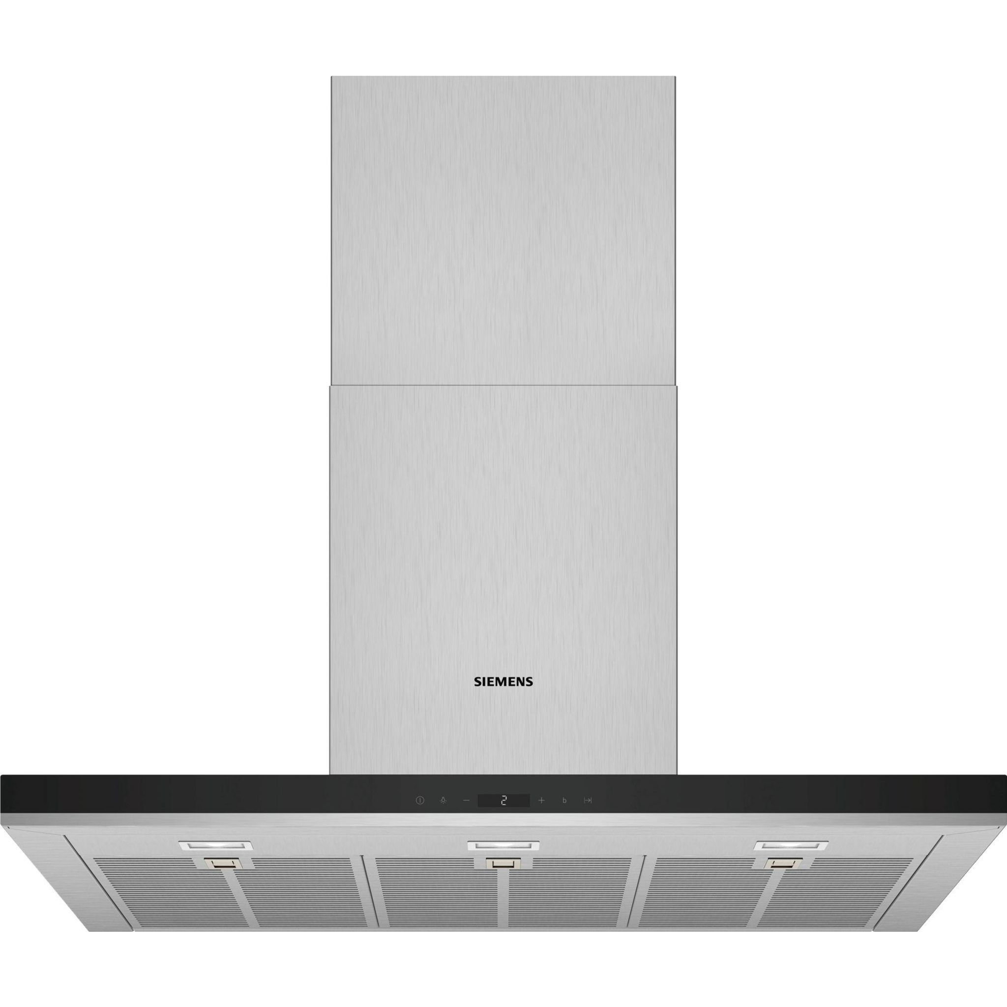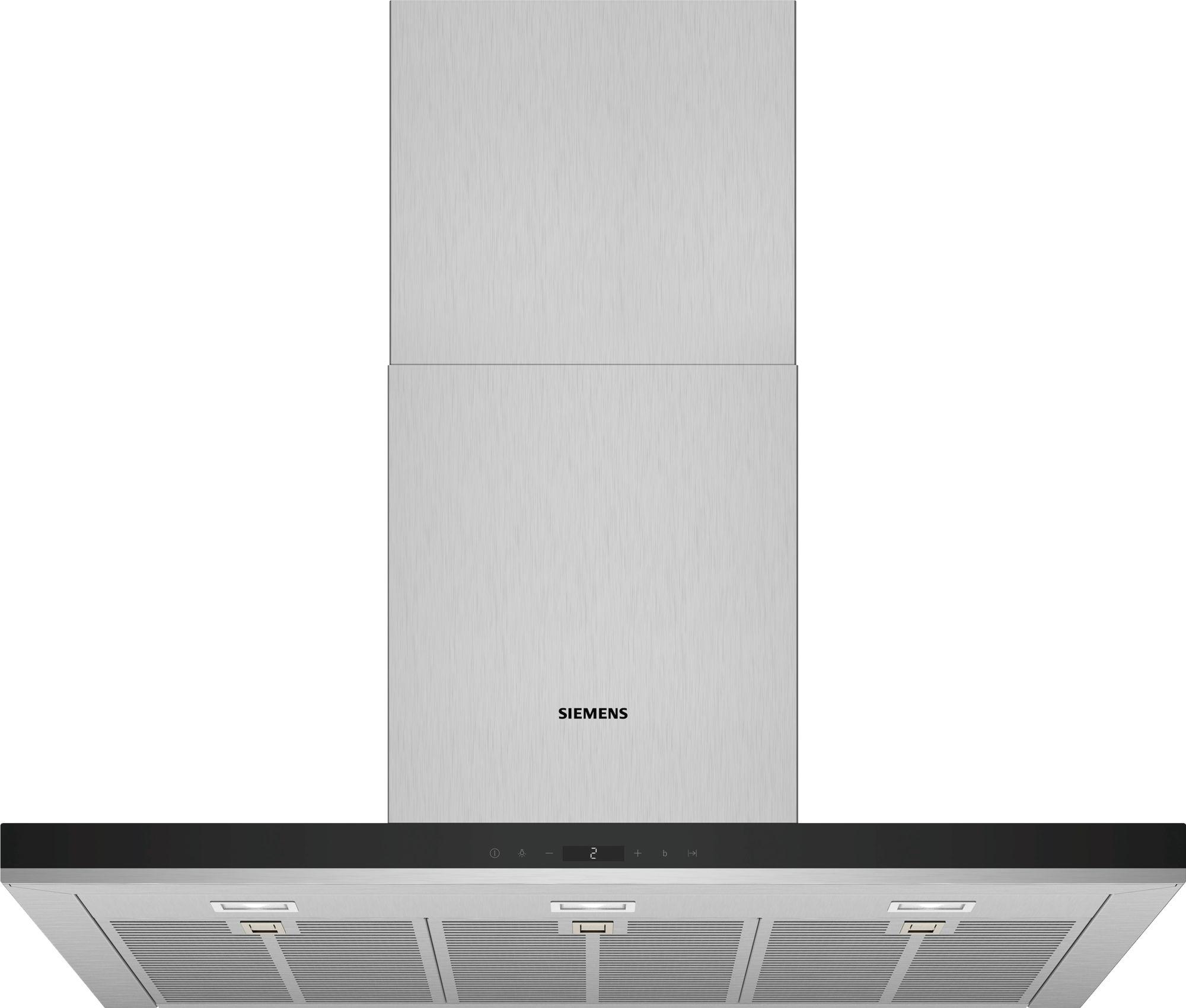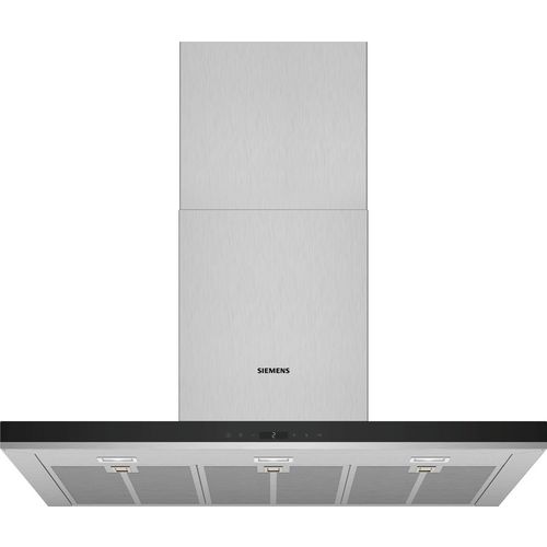 Siemens LC98BIP50 La hotte décoration murale iQ500 Siemens LC98BIP50, avec son fort pouvoir d'extraction, s'accordera parfaitement à votre cuisine.Moteur à induction pour une extraction silencieuse et performante des vapeurs.La position en vitesse intensive vous permet d'augmenter le débit d'air lorsque les fumées sont denses. Un retour automatique en position normale a lieu après 6 min.Les 843 m³/h de débit d'air en évacuation permettent de purifier l'air lors de la cuisson.Hotte extrêmement silencieuse avec seulement 55dB.L'éclairage économique associé à la technologie LED assure une visibilité optimale lors de la cuisson.Vitesse intensive avec retour automatique à la vitesse normale : La vitesse intensive permet d'augmenter brièvement le débit d'air en évacuation lorsque les émanations de cuisson sont particulièrement denses, avec retour automatique à la vitesse normale au bout de 6 minutes.iQdrive motor : Extrêmement silencieux : iQdrive motor.Pour rendre la cuisine encore plus agréable, les hottes de cuisson Siemens convainquent par leur puissance impressionnante et libèrent efficacement votre cuisine des mauvaises odeurs et de la vapeur. Pendant ce temps, elles travaillent agréablement silencieusement - il n'y a donc pas grand-chose à entendre de plus que le son de vos aliments qui cuisent.touchControl : Une utilisation simple : touchControl.Avec touchControl, vous pouvez facilement gérer le niveau de puissance et la lumière LED de votre hotte en appuyant simplement sur un bouton. Quel que soit le réglage dont vous avez besoin, la fonction touchControl réagit immédiatement.